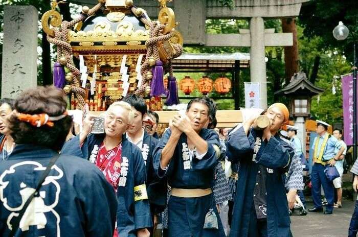 天神通り商店街の先にある、多摩地域でも有数の古社である布多天神社。9月は年の1度の例大祭が行われます。小島、上布田、下布田、上ヶ給の4地区からの神輿が社殿前に並び「みたまうつし」をし、お囃子を奏でる山車や太鼓とともに街へ繰り出します。境内には多数出店があり、地域の人たちが多数訪れるお祭りです。
