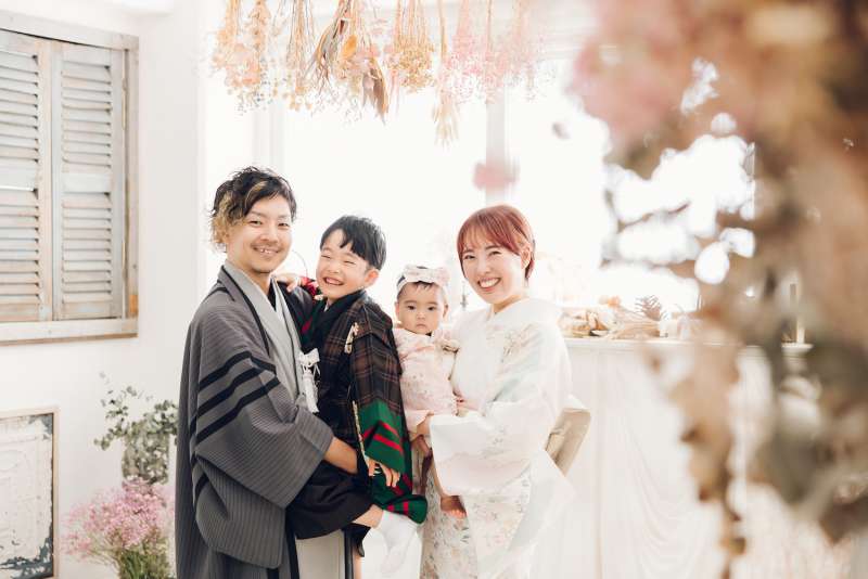 着物レンタル、着付け、ヘアセットにも対応しており、予定が決まっている場合やレンタルご希望の着物がある場合は早めのご予約がおすすめです。お子さまだけでなく、家族そろって着物で撮影される方もいらっしゃるそう。スタジオ撮影に加え、神社など自然な表情を引き出しやすいロケーションでの撮影も人気です。