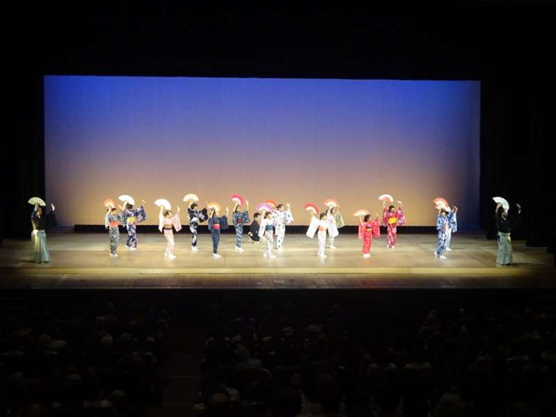 2日間の日本舞踊のお稽古で基本の動きを身に付けた後は、本公演のオープニングで、弧の会と一緒に大ホールの舞台で踊りましょう!