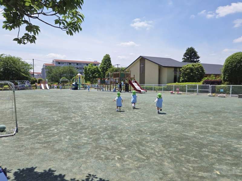 マルガリタ幼稚園のホールや広い園庭で、めいっぱい体を動かして遊べる「マルガリタひろば」。