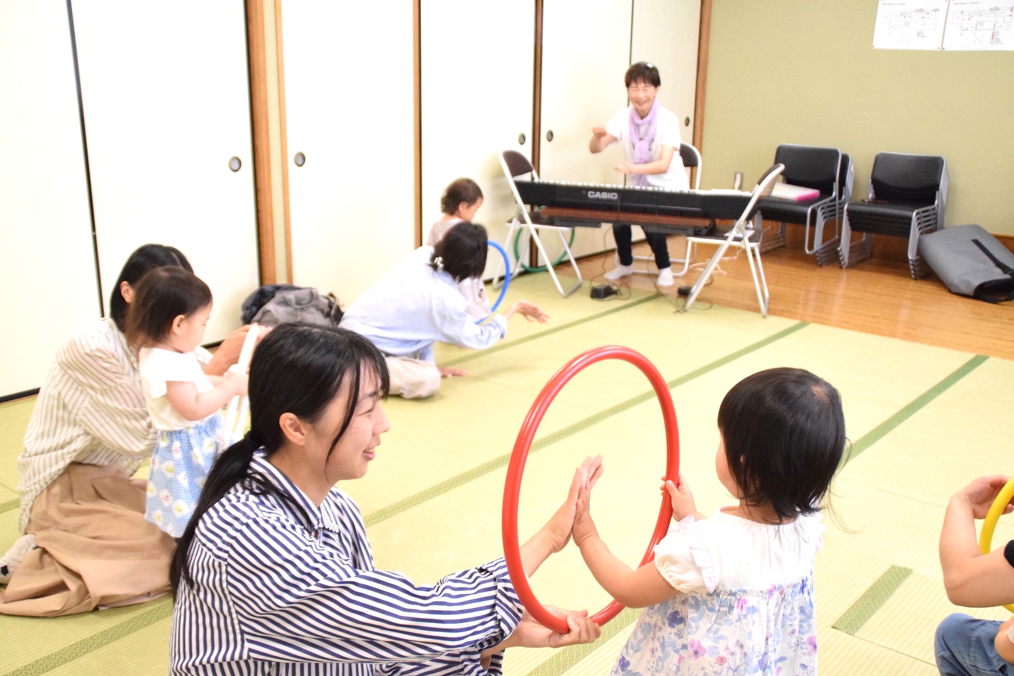 「カスタネット」は2003年にスタートした、親子で楽しむリトミックサークル。現在は菊野台地域センターを拠点に月3回・月曜日に開講し、さらに柴崎の教室でも土曜クラスを実施しています。
