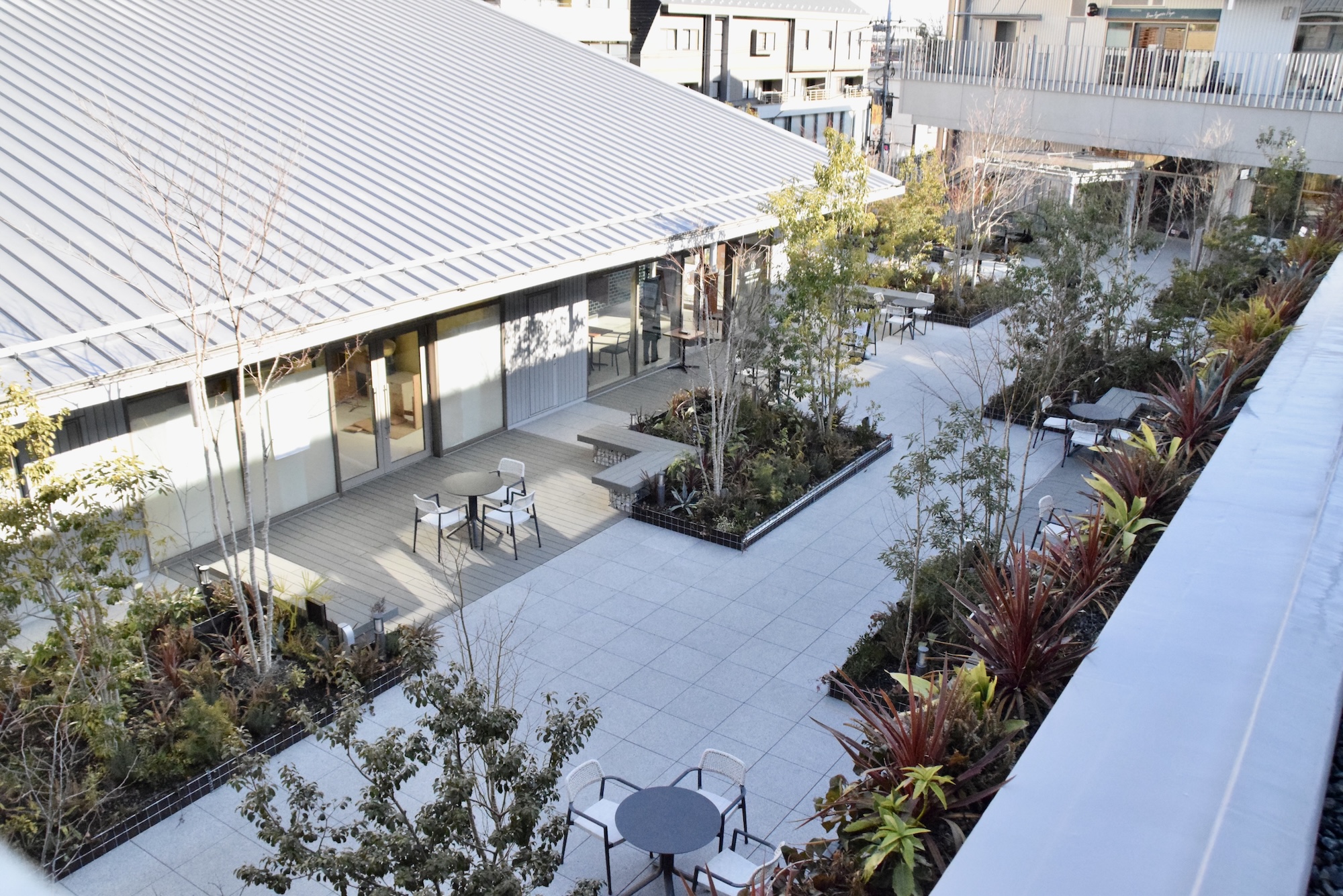 かつてこの地にあった雑木林の記憶を再現する場所に、という思いから「フォレストスクエア仙川」と名付けたのだそう。2階にある吹き抜けのオープンモールはたくさんの木々が植えられ、しかも広々と開放的。椅子に座っておしゃべりを楽しんだり、ひと休みしたり…小さい子どもたちが楽しそうに遊ぶ姿も見られます。